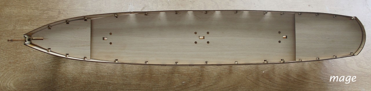 Una de tres mm con las cuadernas, la falsa quilla y los refuerzos del casco.
